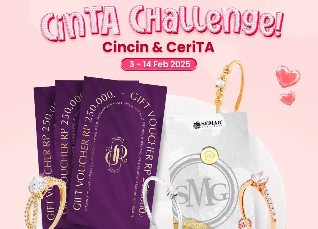 Pas banget nih, Semar Nusantara lagi mengadakan CinTa (Cincin dan Cerita) Challenge dengan hadiah menarik, yakni logam mulia Semar Nusantara dan voucher Diamond Pavilion. Gimana cara ikutan challenge ini? Simak ketentuan di bawah ini, ya!