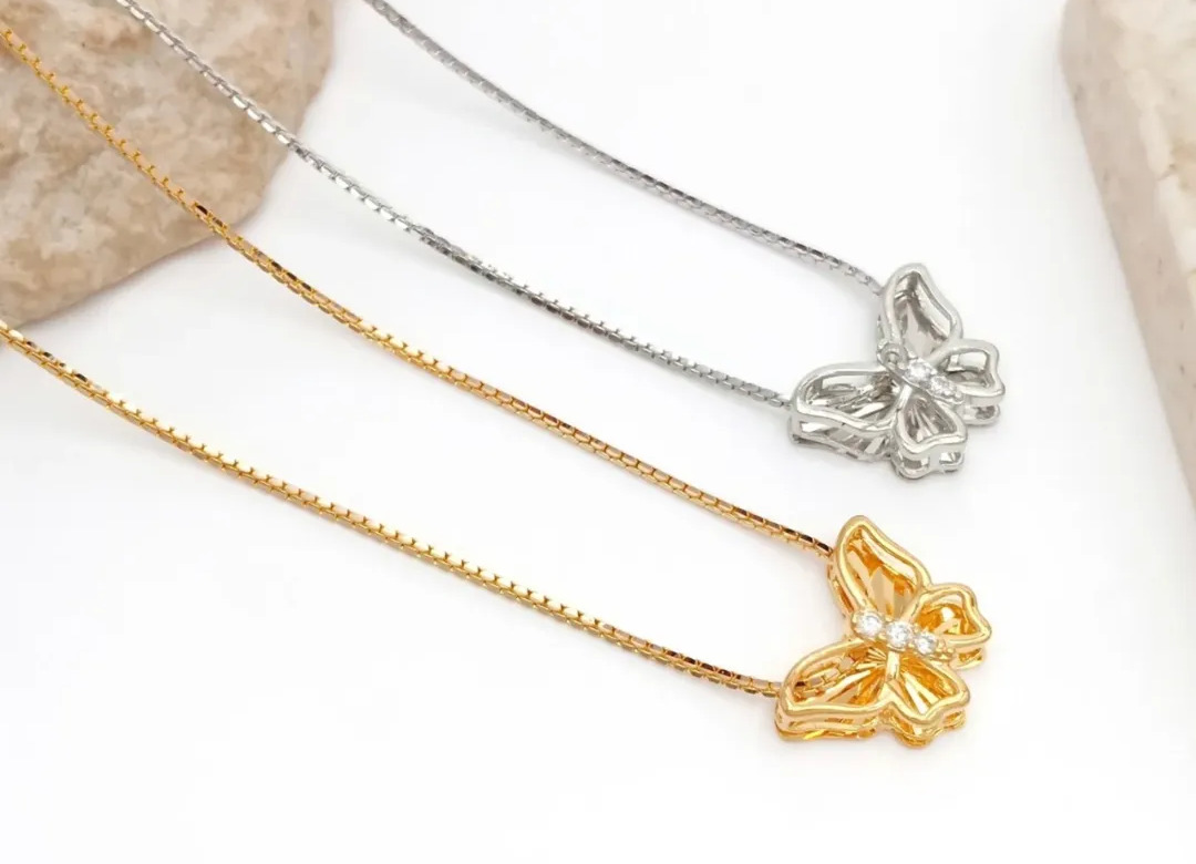 Koleksi yang tidak kalah menggemaskan dari kalung Bird of Summer adalah kalung emas dengan charm kupu. Bandul kupu yang ada pada kalung sebenarnya sudah biasa digunakan. Bahkan ini adalah bandul legend yang sejak dulu masih eksis hingga saat ini. Biasanya, kalung yang diberi charm kupu akan dikombinasikan dengan berbagai desain dan tambahan ornamen lainnya. Model yang dibawa pun juga bervariasi, memberimu banyak pilihan detail untuk melengkapi pakaianmu. Kalung kupu juga menjadi simbol tentang sebuah pertumbuhan dalam hidup. Di mana sebelum menjadi kupu-kupu, sebuah ulat berubah menjadi kepompong dan dengan sabarnya, menunggu sebuah waktu datang untuk membayar hasil jerih payah mereka.