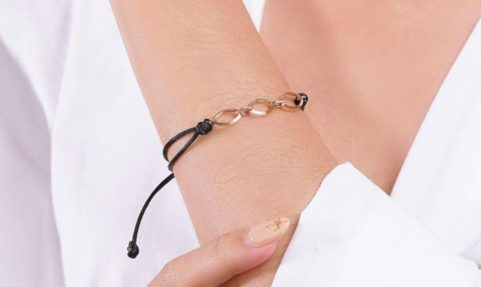 Rekomendisi terakhir adalah gelang tali emas Lorenza berkadar 10 karat. Gelang ini berwarna hitam dengan centerpiece berupa emas berbentuk rantai yang ukurannya cukup besar. Harmoni warna yang ada di dalamnya memberikan kesan young seperti anak muda jika digunakan bagi mereka yang sudah berumur lanjut. Untuk anak muda sendiri, kamu bisa mendapatkan kesan visual yang stylish dan kasual. Harga gelang tali Lorenza berkisar ratusan ribu saja dan bisa distackle dengan jam tangan atau aksesoris lain.